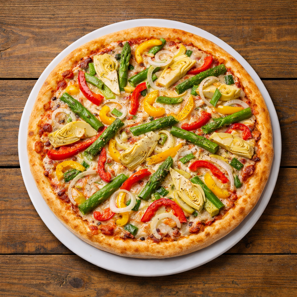 Tomaten, Käse, Zwiebeln, Paprika, Artischocken und Spargel